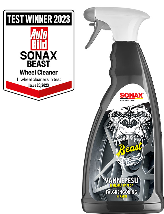 Taas sataa testivoittoja SONAXille! Saksalaiset autolehdet Auto Bild ja Auto Bild Klassik testasivat 11 alle 20 € maksavaa vannepesuainetta, ja ykköspaikalle kiipesi SONAX Beast.